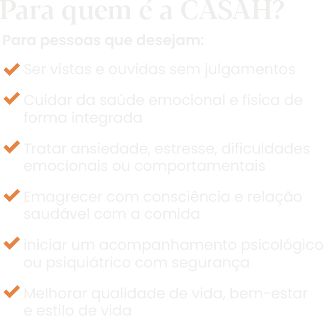 Na CASAH, acreditamos que mente e corpo funcionam juntos. Por isso, atuamos com uma equipe técnica completa:
